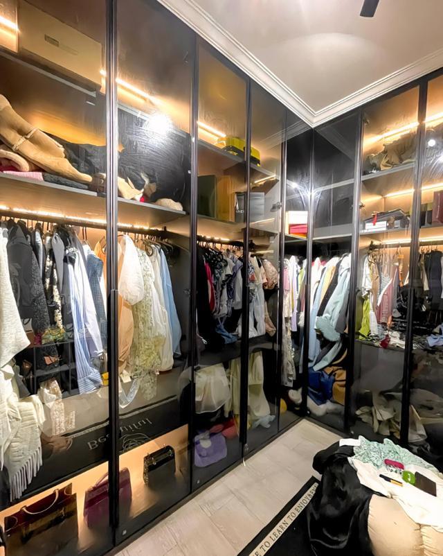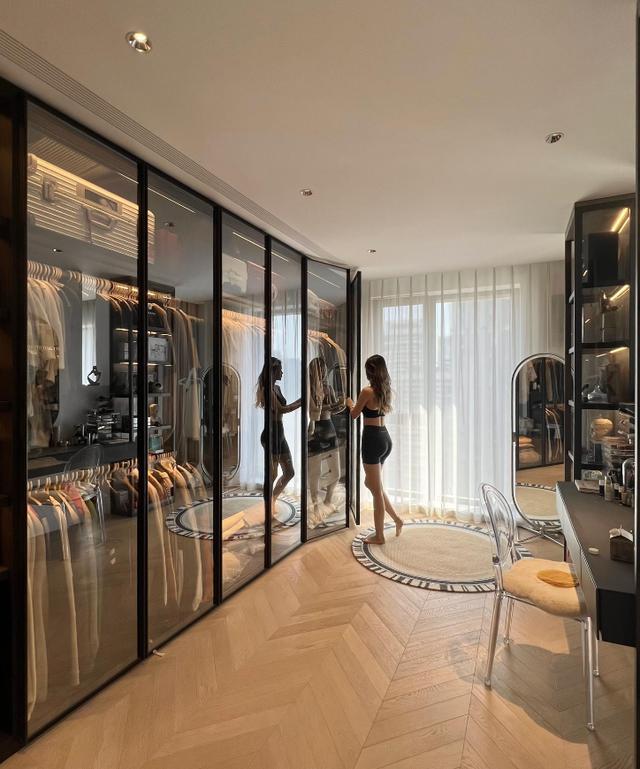所以,就建议我做玻璃柜门,美观、通透,再搭配上暗藏灯光,不仅视觉表现很高级,氛围感也很好。