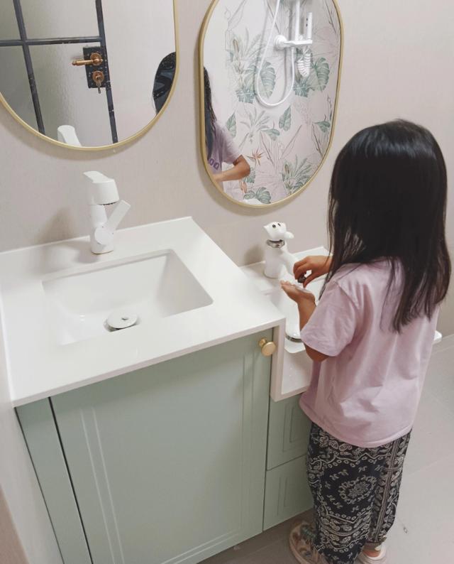 就拿卫生间洗手台来说,如果空间够一定要做亲子高低洗手台设计,方便孩子洗漱使用。