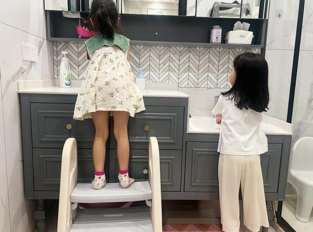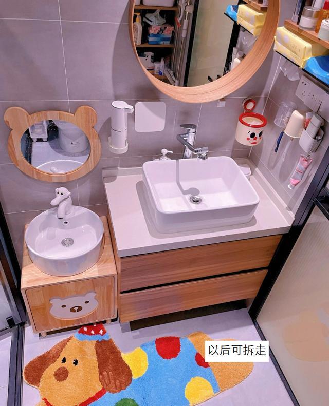 实用吗?说实话,确实很不错,可若从长远考虑的话,这个设计反而非常鸡肋。毕竟等到孩子长大,那个低台盆基本上就闲置了。