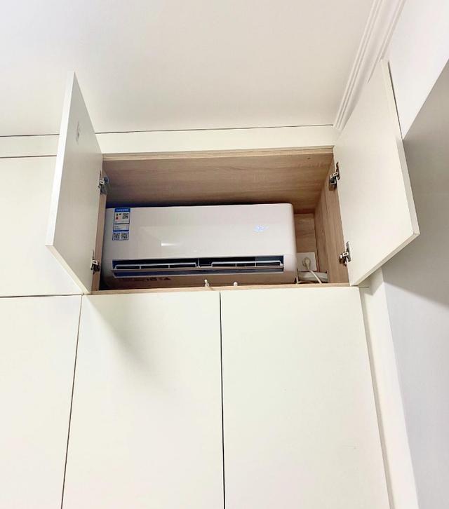 唯一的问题,就是不太美观。所以装修时为了解决这个问题,就听从别人的建议把挂机藏到了柜子里。