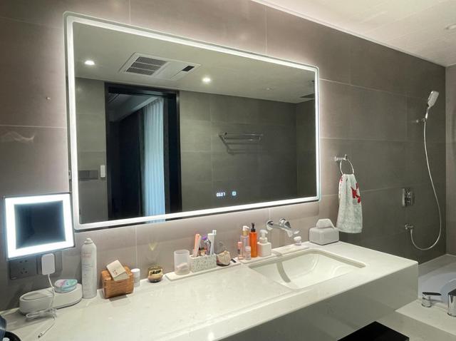 智能浴室镜的功能有很多,但唯一让我动心的,就是它自动除雾功能。当然,这也是商家最大的卖点。